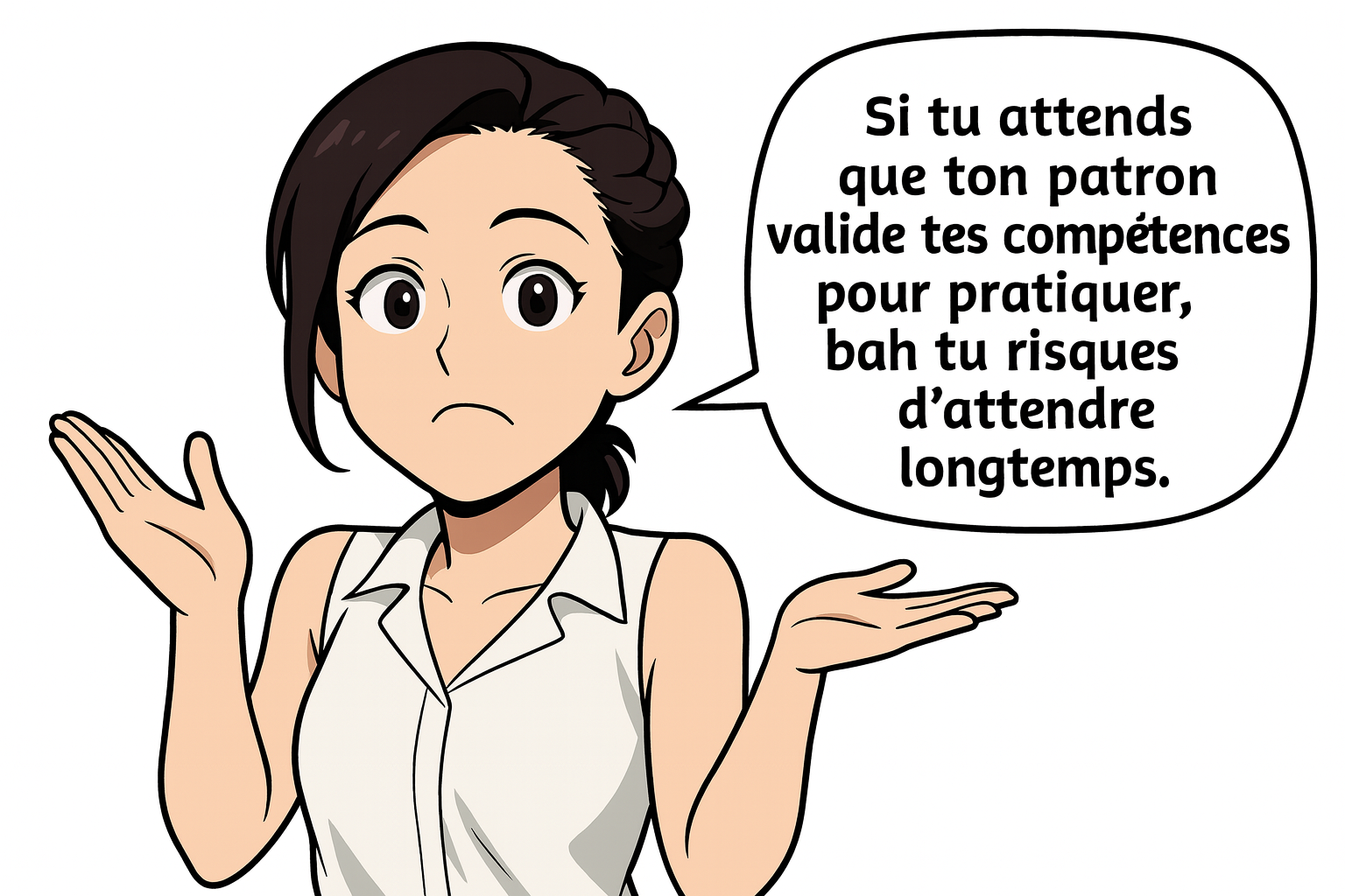 Très vite, j’ai fait un constat qui m’a franchement agacée. Même quand tu formes des petits Padawans, que tu les blindes de savoir et que tu les transformes en machines de connaissances prêtes à l’emploi… quelques années plus tard, tu les retrouves sans jamais avoir osé pratiquer. Tout ce qu’ils avaient appris est resté dans un tiroir fermé à clé. Alors qu’ils avaient littéralement de l’or entre les mains !