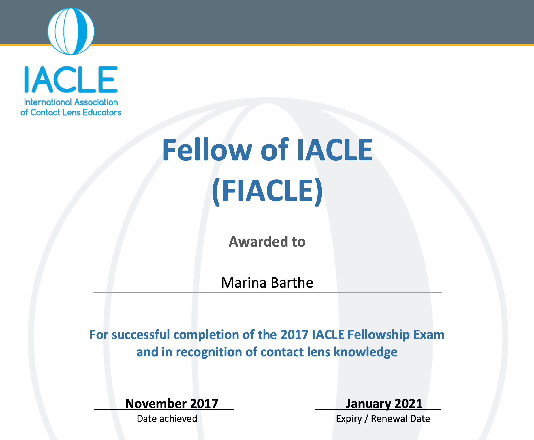 Au-delà de la France, j’ai aussi rejoint l’IACLE – International Association of Contact Lens Educators, car je suis enseignante en contactologie. Mon but : me former davantage, comprendre les pratiques internationales, et les ramener ici.