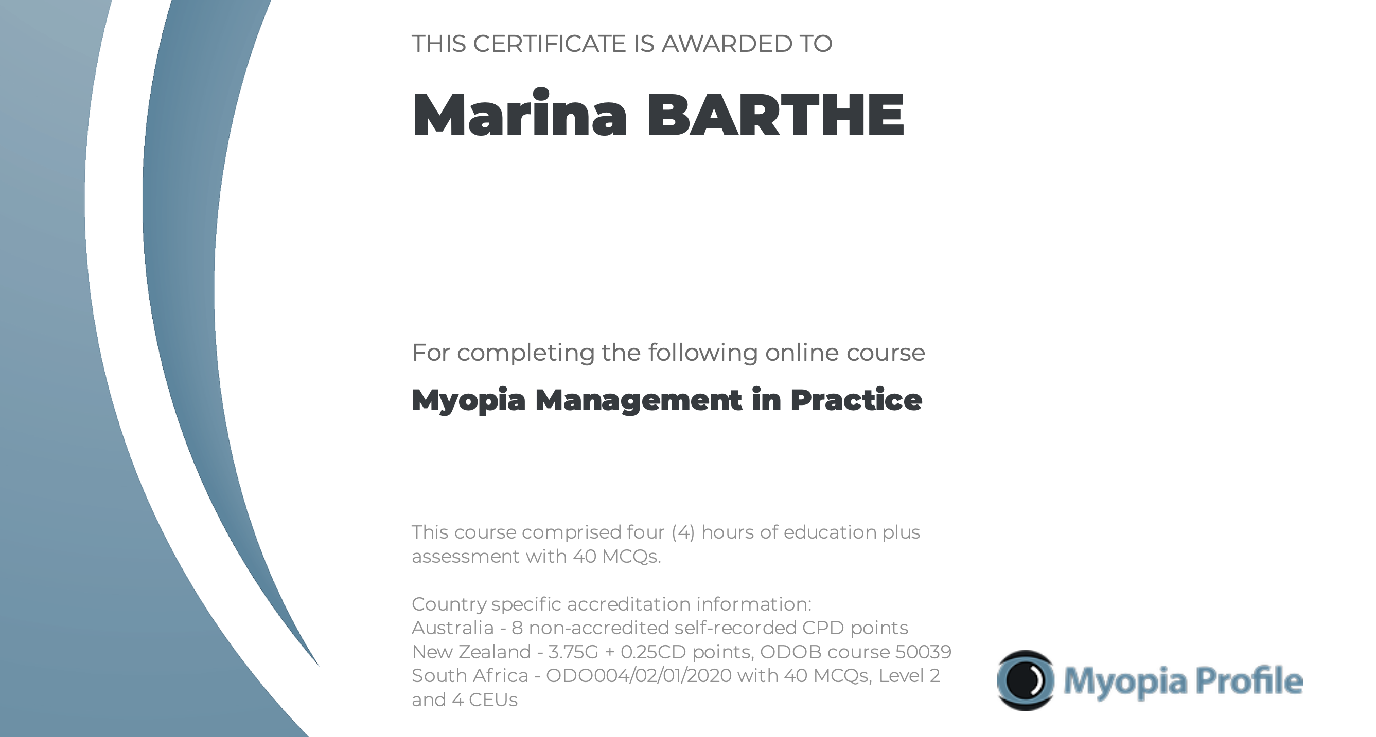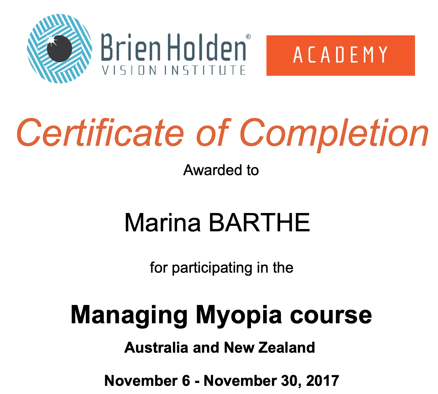 - sur la gestion de la myopie évolutive avec le Brien Holden Institute,